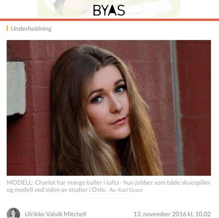 Byas.no - Article: "Charlot (24) fra Sola jobber som skuespiller og modell i Oslo" (2016)